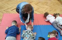 „Logorytmika”- dzieci z grupy I aktywnie uczestniczyły w zabawach prowadzonych przez panią logopedę.
