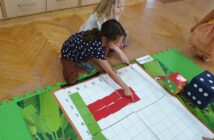 „Zabawy z kodowaniem na dywanie”- dzieci z grupy IV kodowały flagę Polski.