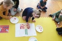 „Drzewo”- kodowanie na dywanie, dzieci z grupy IV bawiły się w kodowanie układając wg kodów…