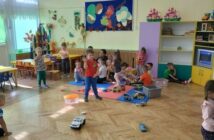 „Wesołe zabawy” – maluszki adoptowały się w przedszkolu, jedne aktywnie się bawiły, inne dzieci obserwowały.