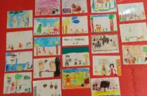 „Czas z rodziną”- rysowanie kredkami pastelowymi ; prace plastyczne wykonane przez dzieci z grupy IV.