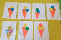 „Kolorowe lody”- wycinanka z kolorowego papieru z elementami origami – prace plastyczne wykonane przez dzieci…