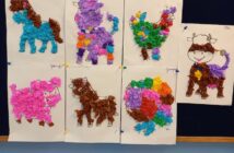 „W wiejskiej zagrodzie” – wydzieranka z kolorowej bibuły, praca plastyczna wykonana przez dzieci z grupy…